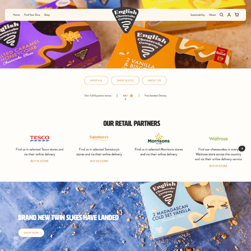 Founded in the 1990s, English Cheesecake Company is into its third decade of delighting customers with decadent desserts. They have reached an inflection point, with expansion into supermarkets nationwide requiring a brand and website to match the big, multinational players in the industry.